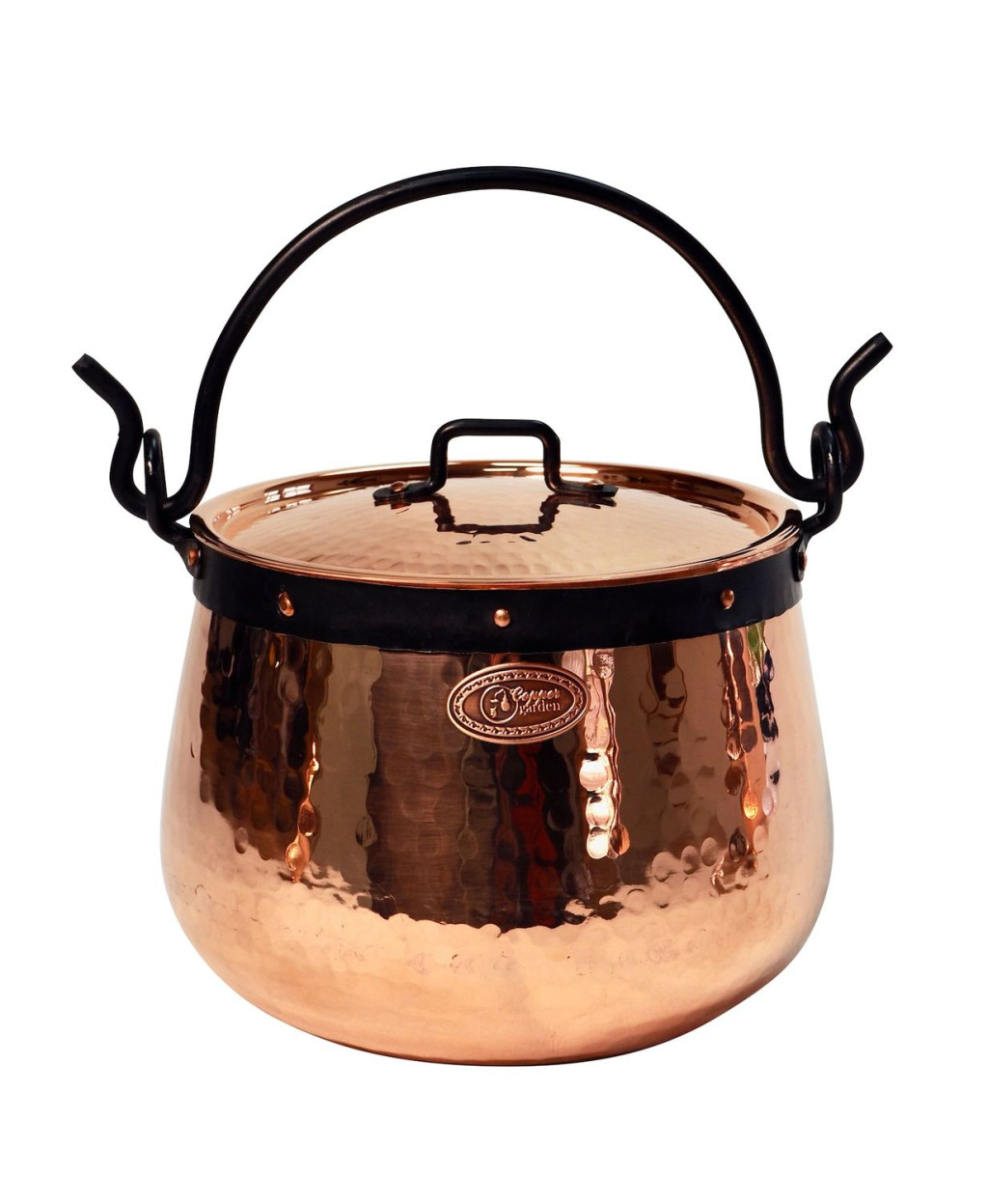• erős kovácsolt vas füllel rendelkezik, így akár peremig megtöltve is biztonságosan felakasztható