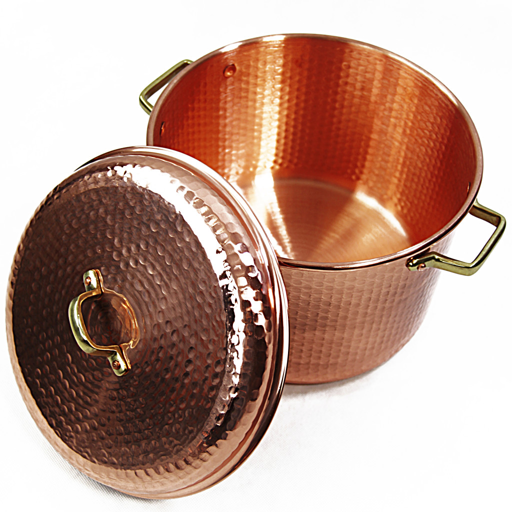 Lábas vörösrézből, 12 literes, fedővel – kézzel kovácsolt prémium főzőedény