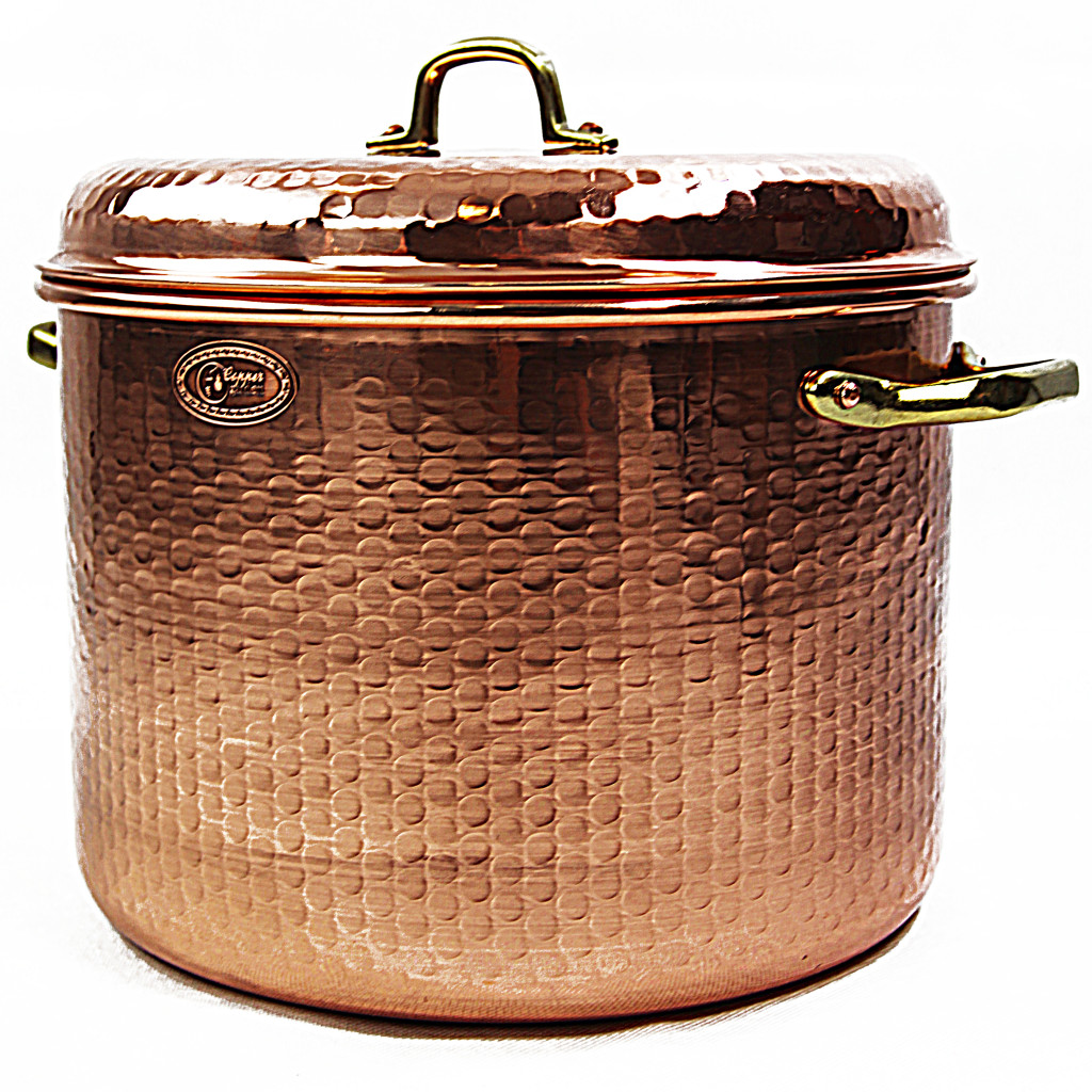 Ez a kézzel kovácsolt vörösréz edény nemcsak tartós és szinte elnyűhetetlen, hanem valódi mestermunka is, amely a modern és a hagyományos konyhákban egyaránt megállja a helyét. A hozzá tartozó fedő segít a hő megtartásában, így ideális hosszabb főzési folyamatokhoz is.